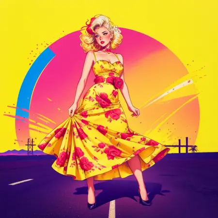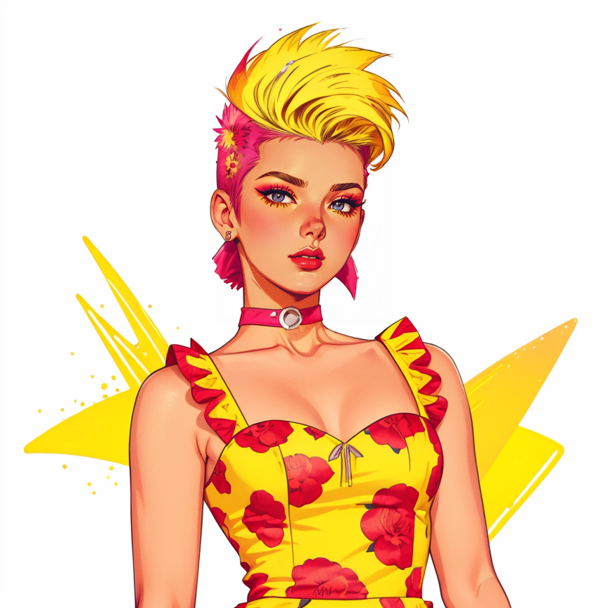 키워드: hud_dk_4, 긴 노란 드레스, 연필 치마, 플로럴 프린트, 어깨대なし, 초커