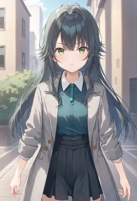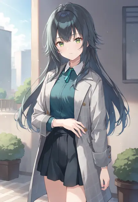 tsukimura temari, long hair, green eyes, black hairOutfit