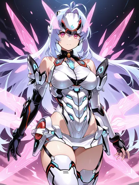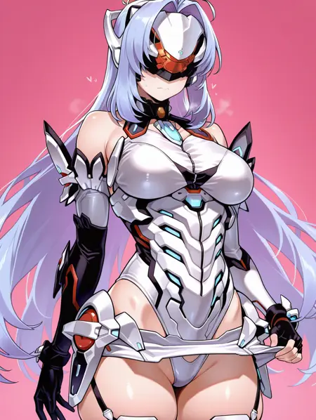 タグ(衣装追加):ピンクのアーマー、発光、単眼の青い機械目、機械製の猫の耳