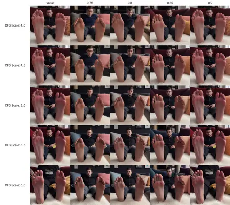 Control Netを併用すると特に効果的です。男性の足裏を示すCannyとDepth(コントロールウェイト0.3)のユニットを使用する場合がベストです。