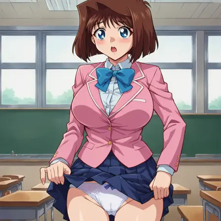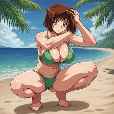 score_9, score_8_up, score_7_up, source_anime, BREAK, uncensored, lora:Anzu\_Mazaki:1, brown hair, short hair, blue eyes, large breasts, looking at viewer, 1girl, solo, curvy, voluptuous