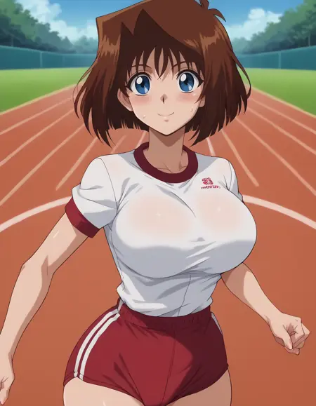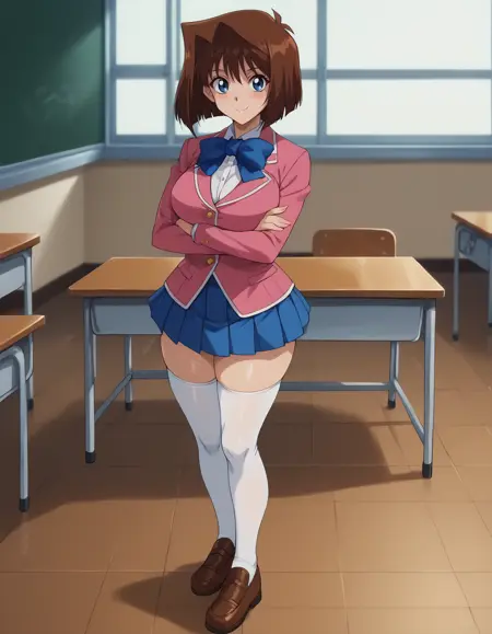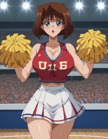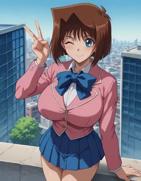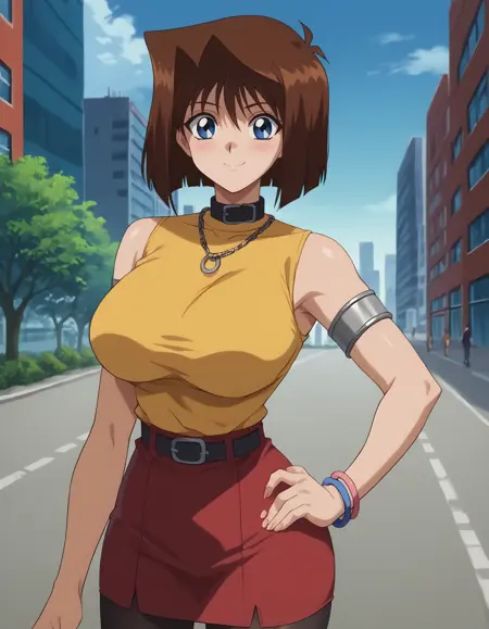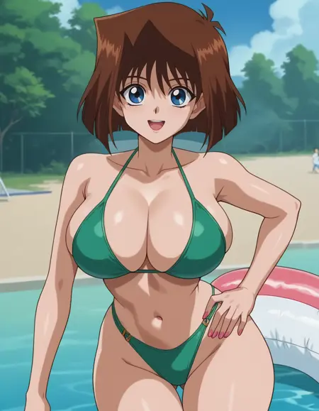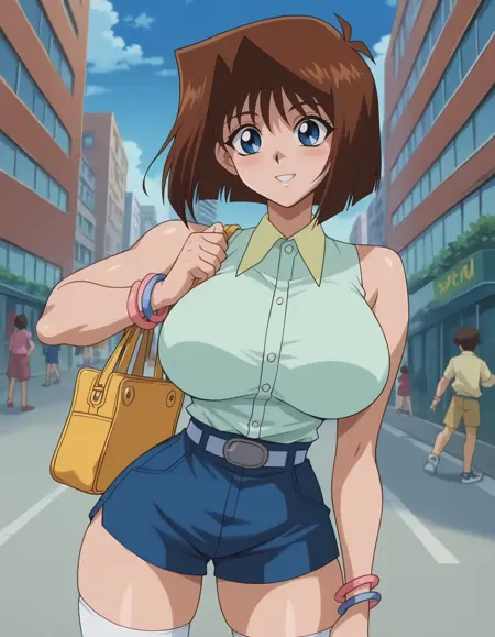 score_9, score_8_up, score_7_up, source_anime, BREAK, uncensored, lora:Anzu\_Mazaki:1, brown hair, short hair, blue eyes, large breasts, looking at viewer, 1girl, solo, curvy, voluptuous