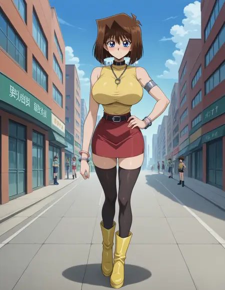 score_9, score_8_up, score_7_up, source_anime, BREAK, 无审查, lora:Anzu\_Mazaki:1, 棕色头发,短发,蓝眼睛,大胸,注视观众,1girl,单人,曲线美,丰满