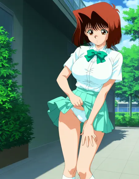 score_9, score_8_up, score_7_up, source_anime, BREAK, uncensored, lora:Anzu\_Mazaki:1, brown hair, short hair, blue eyes, large breasts, looking at viewer, 1girl, solo, curvy, voluptuous