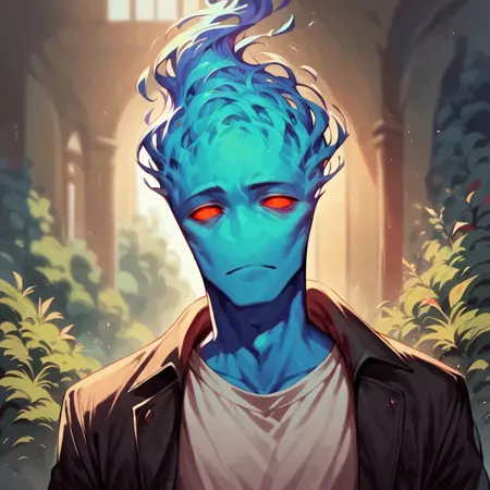 예시 프롬프트: firehuman, fiery body, blue tips, 1girl, red body, yellow eyes,