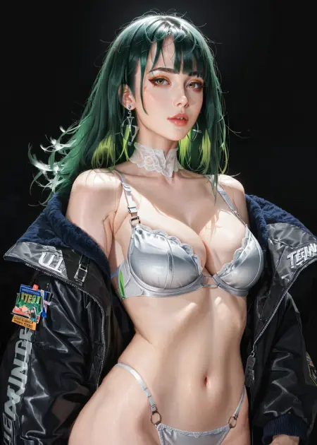 常用关键词包括:1girl、solo、敞开夹克、紧身衣、全身、赛博格、机械关节、黑色背景、妆容、乳房、乳沟。在某些模型中,使用ulzzang关键词有助于获得漂亮的韩系面容。