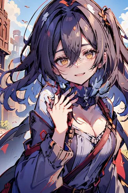 회색 도마뱀은 『열강 전선』(The Doomsday is Wartime)에 등장하는 인물로, 청색과 흰색 프릴 드레스에 긴 소매 흰 니트 스웨터를 매치한 수도복을 입고 있으며(검은 아ーム커버를 착용하기도 함), 왼쪽 다리에는 흰색 니삭스를 신고(오른쪽 무릎 부상으로 인해 오른쪽 니삭스는 신지 않음), 검은 펌프스를 신는다. (남성의 모습에서는 빨간 차이나 복에 배를 드러내고, 검은 카고 팬츠에 검은 타이츠를 신는다.) 오른쪽 무릎의 붕대는 과거 학대를 받았던 흔적이다.