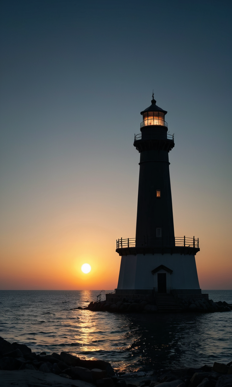 인물 없음, 바다, 작은 언덕, 등대, 작은 집, 밤, 일몰, 어두운 배경, 필름, 필름 그레인