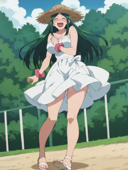 sleeveless,white dress,straw hat,sundress,wrist scrunchie,