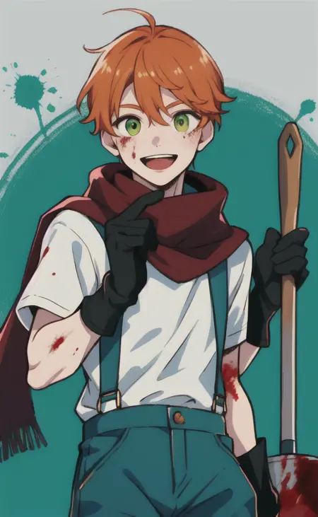Unfortunately can't draw his mask even though I included it in the training data, use the tag 'mask' if you wanna try.