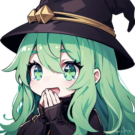 例のプロンプト: twitchemote , 1girl , 緑色の波打ち感のある髪 , 青い目 , 黒い魔女の帽子 , :D , 親指を立てたポーズ, いいね, 高度に詳細な描写 , 側面 , 歯牙 lora:EmoteMakerLora:0.85