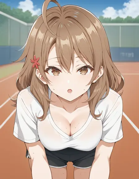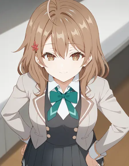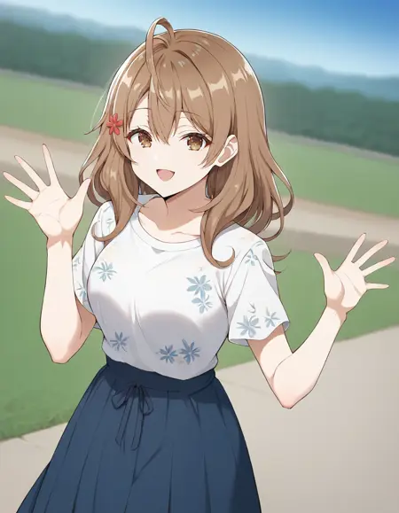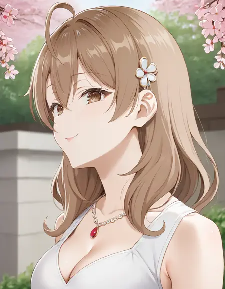 <lora:maria_mikhailovna_kujou-roshidere_s1-ixl-anime-soralz:1>, maria mikhailovna kujou (roshidere), 中长发, 棕发, 天线发, 发丝遮眼, 发饰, 棕色眼睛