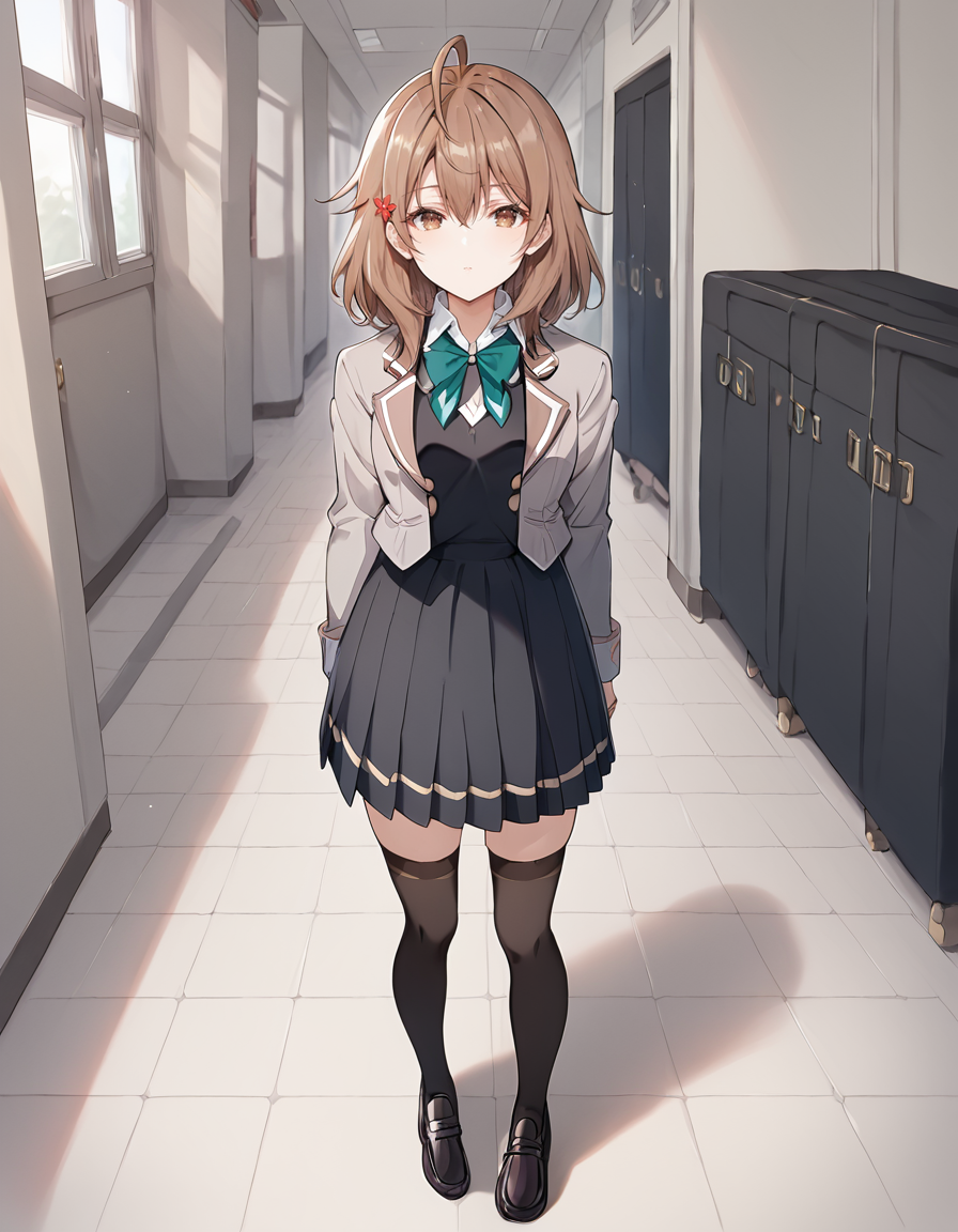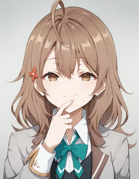 <lora:maria_mikhailovna_kujou-roshidere_s1-ixl-anime-soralz:1>, maria mikhailovna kujou (roshidere), 中长发, 棕发, 天线发, 发丝遮眼, 发饰, 棕色眼睛