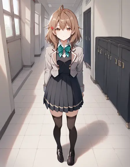 <lora:maria_mikhailovna_kujou-roshidere_s1-ixl-anime-soralz:1>, maria mikhailovna kujou (roshidere), medium hair, brown hair, ahoge, hair between eyes, hair ornament, brown eyes