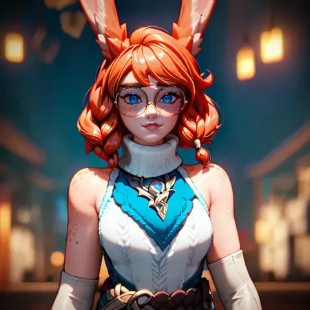 基础提示:AuroraLOL,1个女孩,红发,雀斑,兔子耳朵,兔子尾巴,耳环,