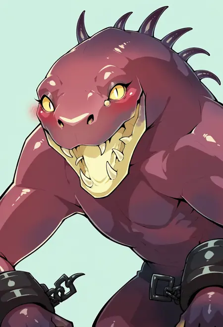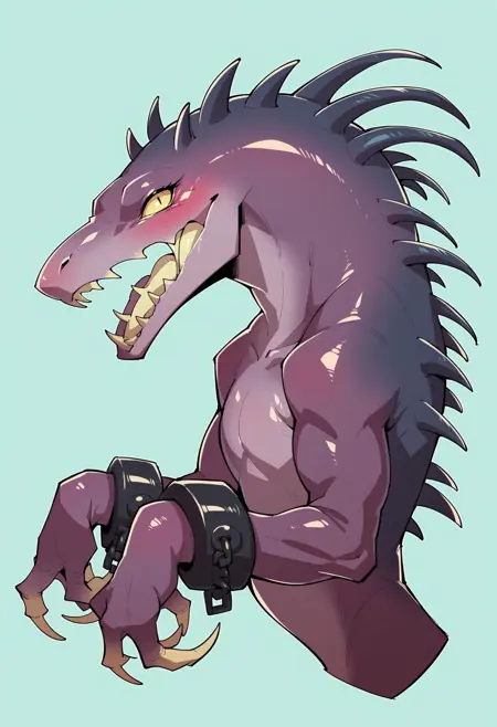 怪物,无人类,爪子,黄眼睛,发光,牙齿,尖刺,手铐,