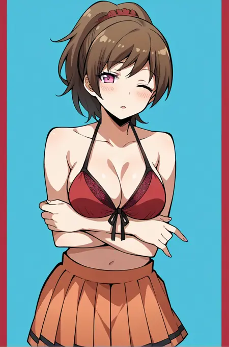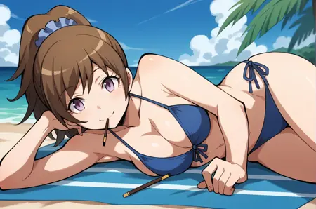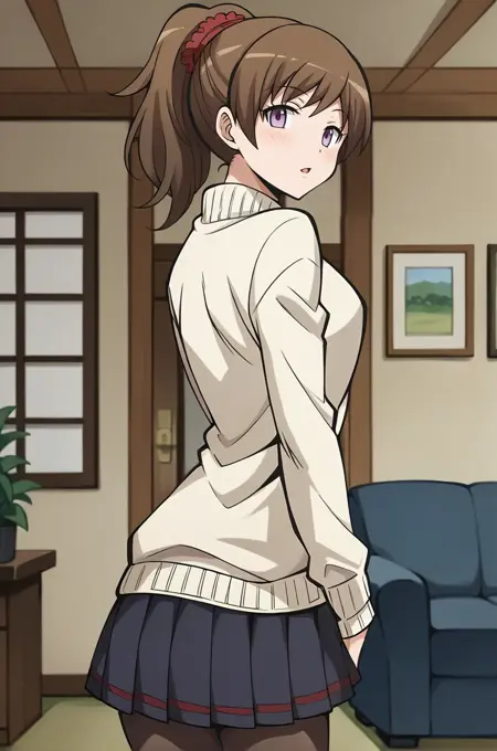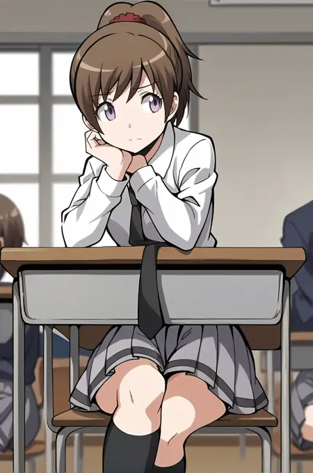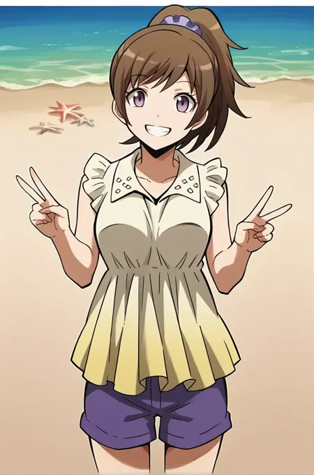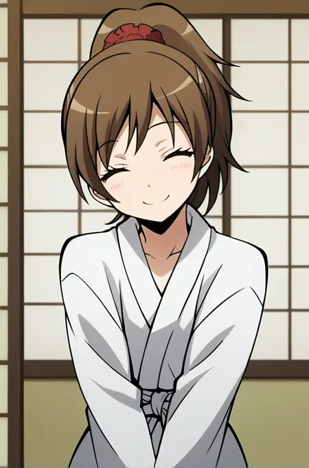 Trigger words: yadatoka, brown hair, high ponytail, purple eyes