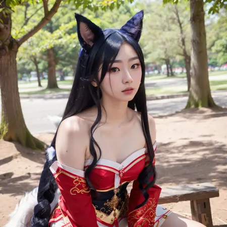 うまくいかない場合は、トリガー語として**(白い尻尾、黒いロングヘア、黄色い目)** を使ってください!たまにドレスが白になってしまうこともあったため、その際は**_(赤いドレス)_** を使ってください!!