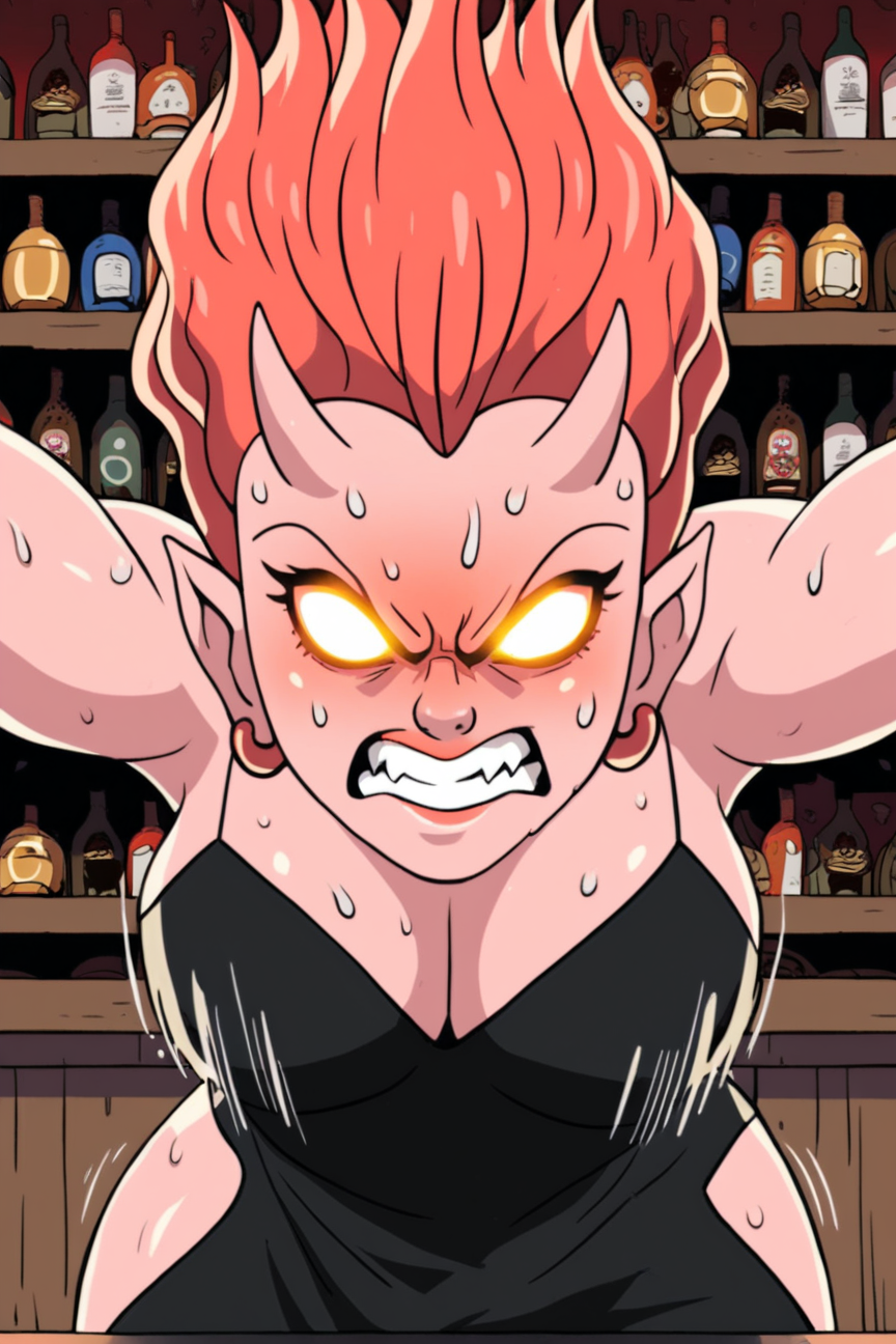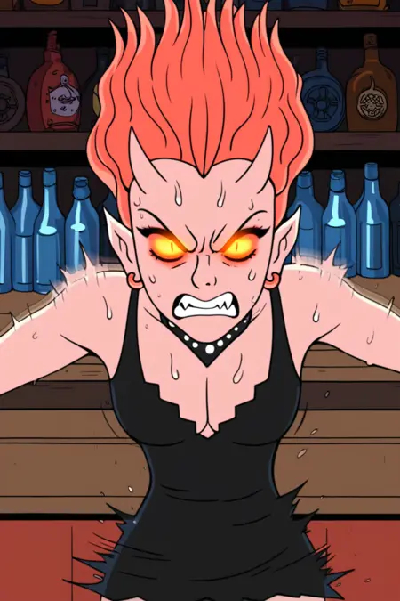 Also try: glowing eyes, red eyes, clenched teeth, clenched hands, Callie evil demon face
