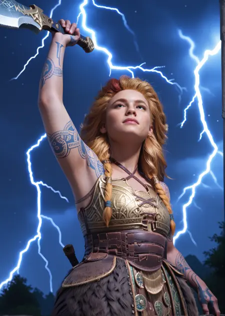 God of War - Ragnarok의 캐릭터 트루드 토르스도티르의 이미지로 학습됨