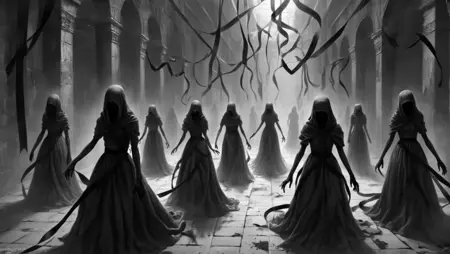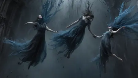 キーワード: fall of despair, dark, orbs, shadow, haunt, dread, twilight, silhouette, journey, night, end, rise, fall, depth, sink, abyss