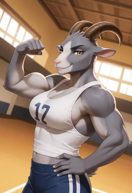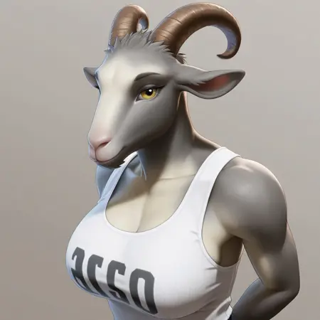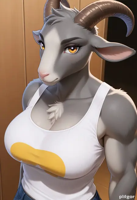 Pilgor, Goat, grey fur, two tone fur, Yellow eyes, goat eyes, goat ears, goat horns