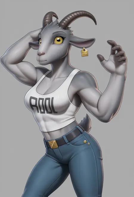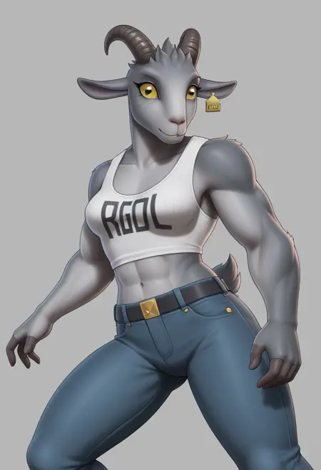 Pilgor, Goat, grey fur, two tone fur, Yellow eyes, goat eyes, goat ears, goat horns
