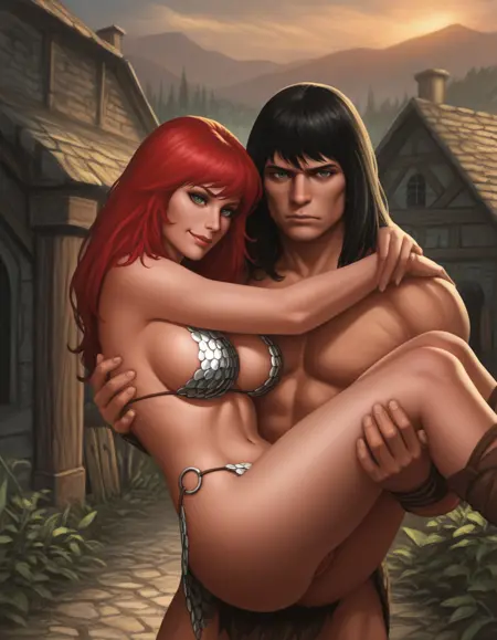 For Conan and Red Sonja in the same image, start with this prompt: 1girl, RedSonja, 1boy, Conan