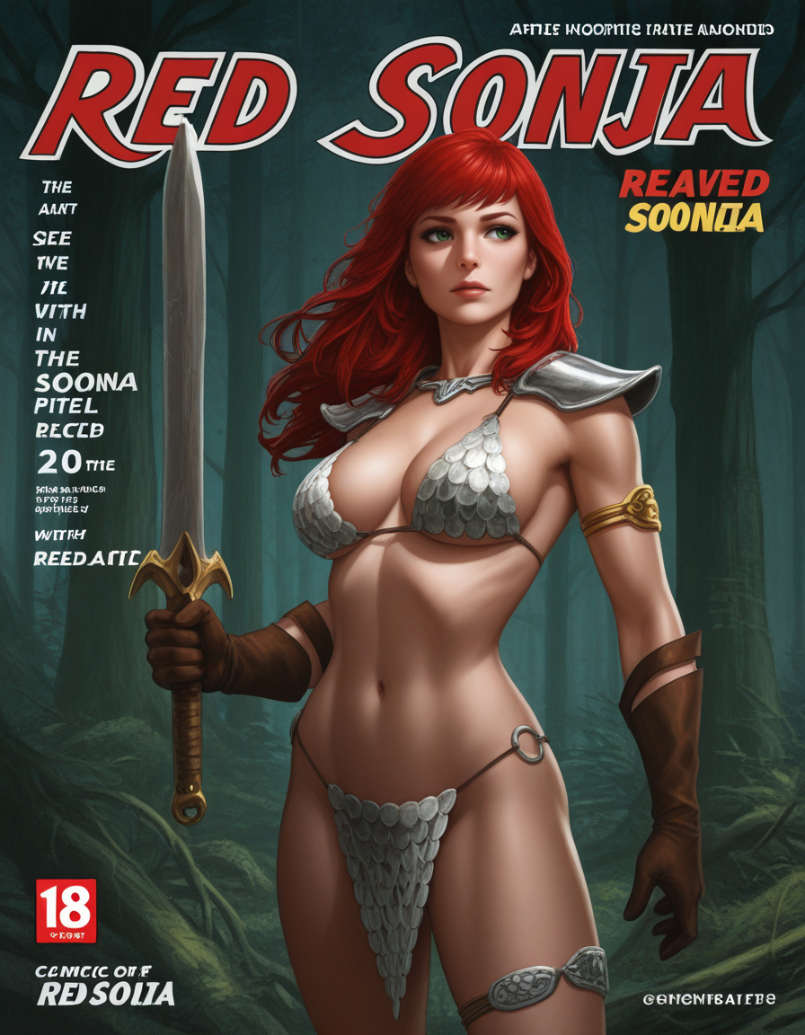 Prompt for Red Sonja: 1girl, RedSonja, red hair, long hair, green eyes, armor, bikini armor, breasts, gloves