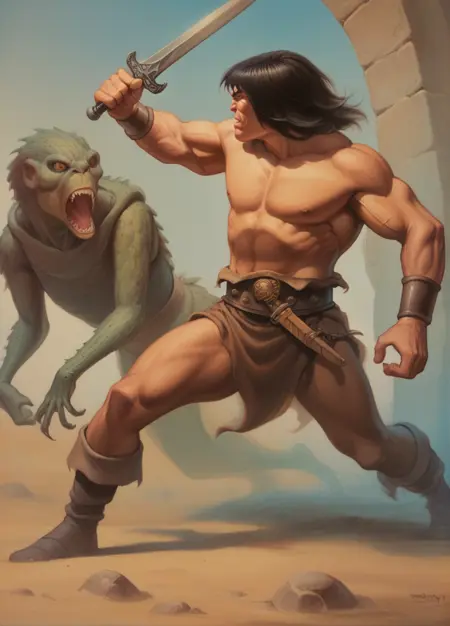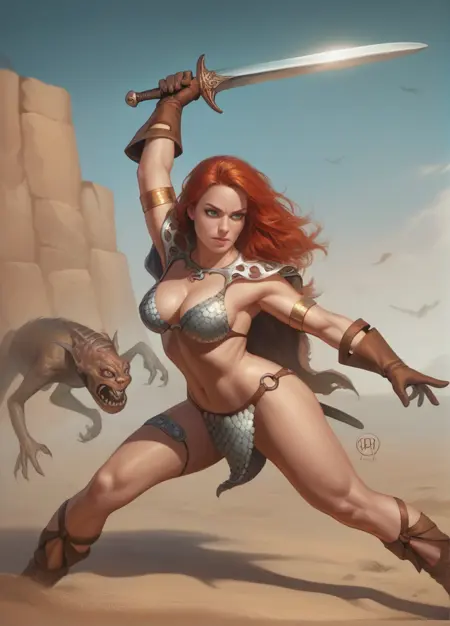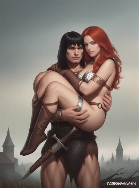 For Conan and Red Sonja in the same image, start with this prompt: 1girl, RedSonja, 1boy, Conan