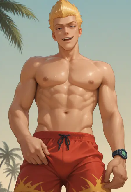 Costumes Prompt : red yellow jacket/hoodie, white shirt under, short sleeve, necklace, watch