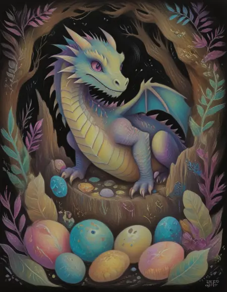 此 LoRA 会在黑色背景上生成精细的粉笔彩粉画作。色彩调色板较为暗淡,但包含丰富的彩色渐变。角色通常具有动漫风格,尤其是人物。黑色背景在简单构图中更明显,但在背景被完全覆盖的场景中可能几乎不可见。