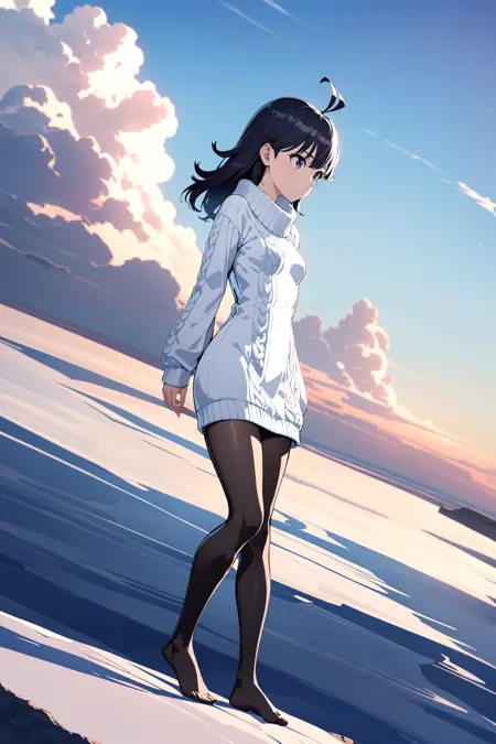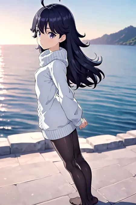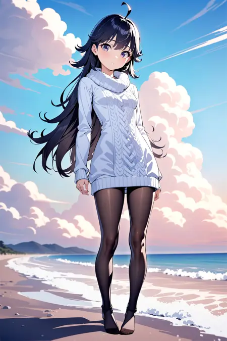 trigger: kamisaman, ahoge, black hair, small breasts,