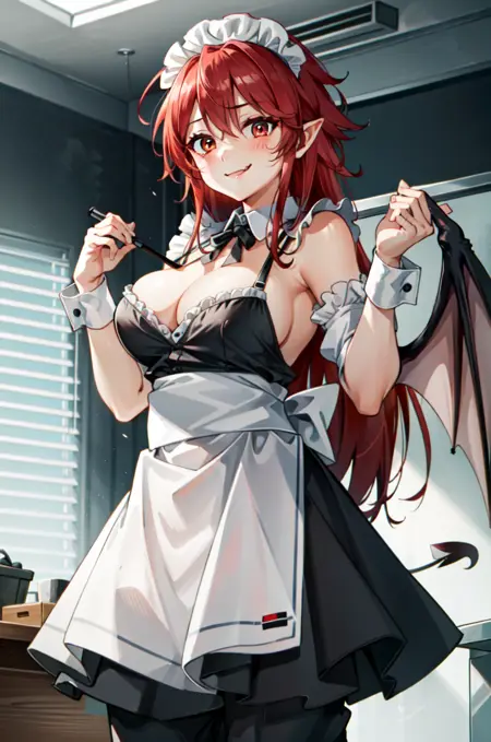MariSetogoya,1女孩,长发,红眼,红发,翅膀,尖耳朵,獠牙,蝙蝠翼,恶魔翼,(你的装扮:1.1)