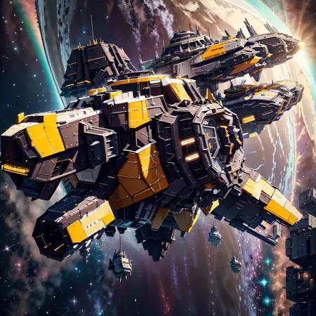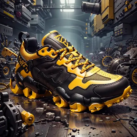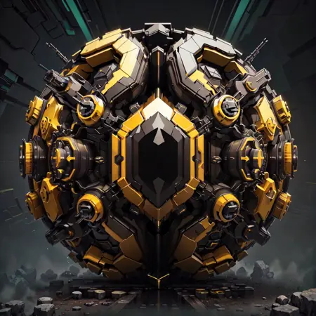 让物体呈现黄黑色,具有坚固、方块状、模块化设计的风格。