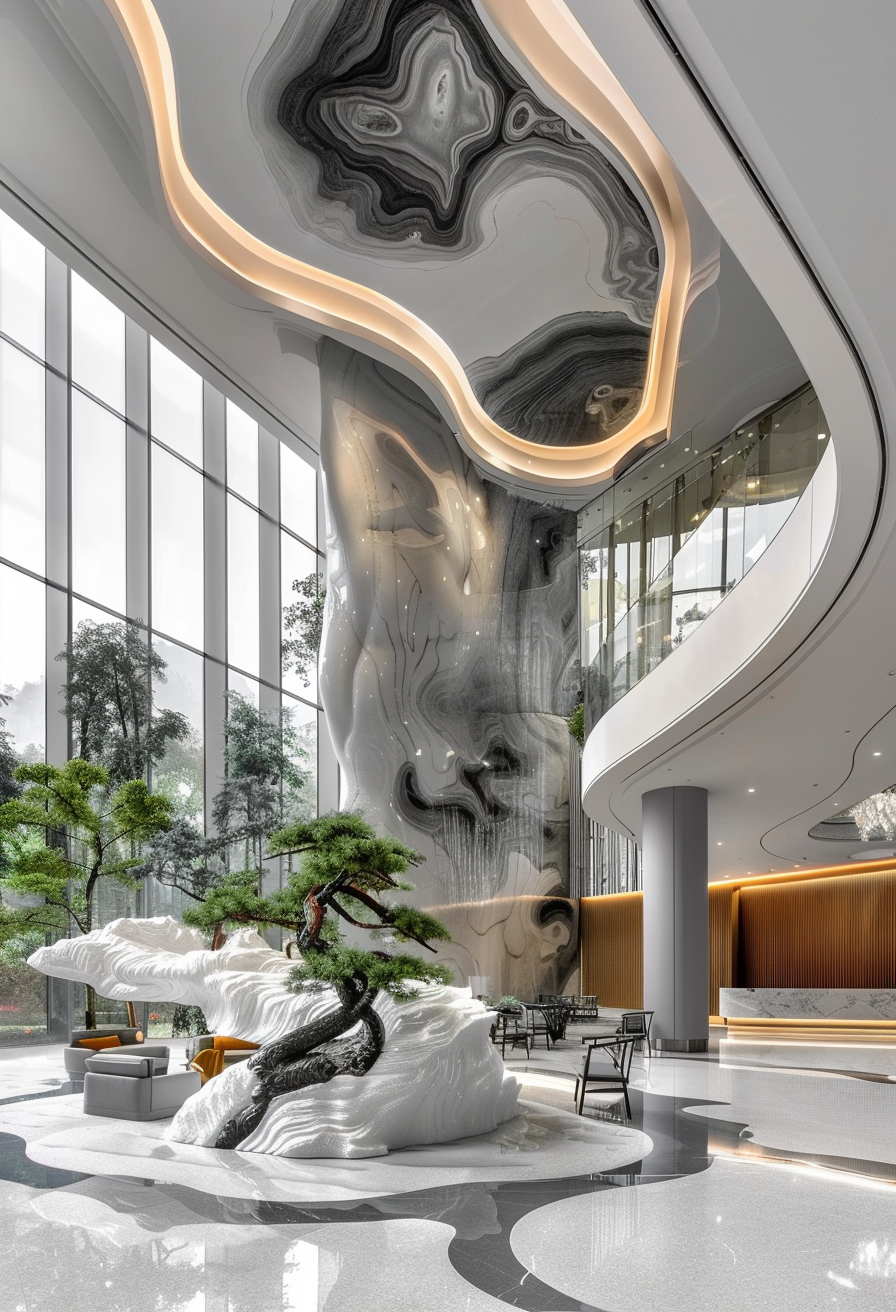 正向提示词:根据需求填写常规室内提示词。例如:chinese element,no humans,scenery,tree,day,indoors,window,outdoors,bare tree,sky,best quality,Highly detailed,Professional
