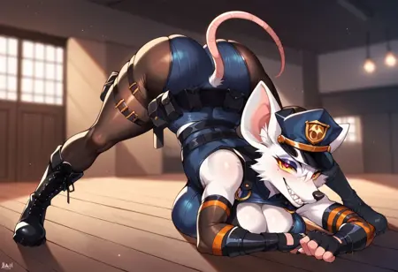 角色标签:兽耳,Oflint,老鼠,鼠女,白毛,黄眼白,橙色瞳孔,鼠尾,大屁股,圆润胸部