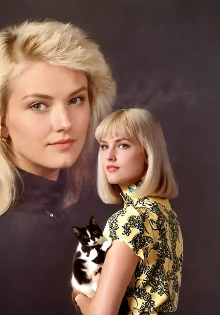 チーズのような笑顔、奇妙な背景、そしてもちろん…ダブルエクスポージャー。