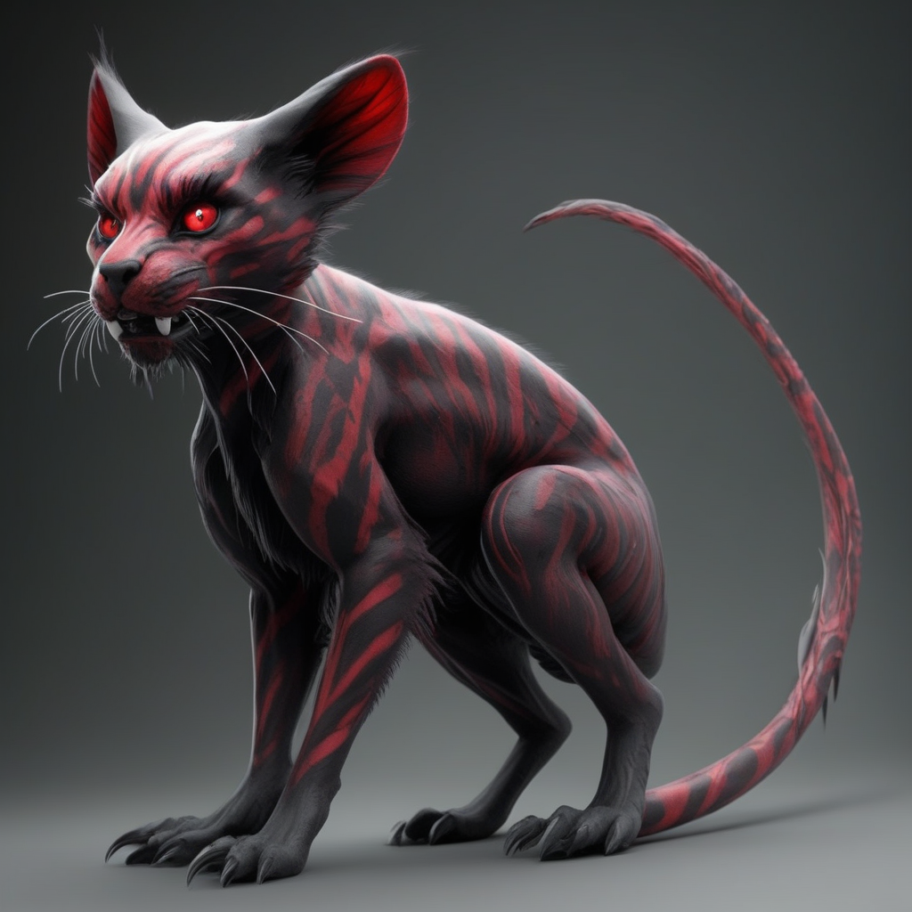 作用:创建一名 resembling lin 的凶猛猎手,具有条纹、金属质感皮肤和红色鬃毛