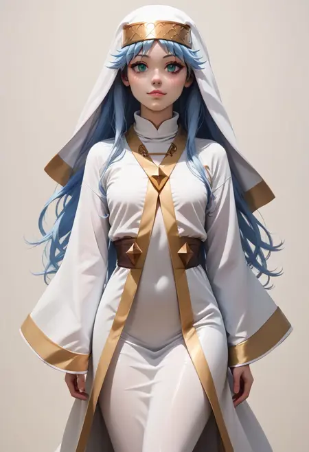 衣装:official_costume, long sleeves, nun, robe, white robe, wide sleeves,