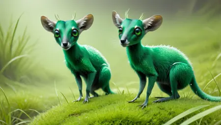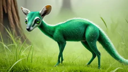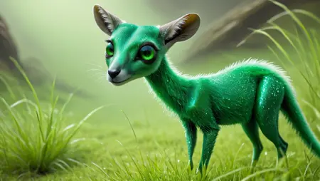 描述:这些食草动物拥有闪亮的绿色皮毛,有助于它们融入周围环境。它们的大眼睛表情丰富,呈深琥珀色。它们拥有修长纤细的腿和纤细优雅的脖子。