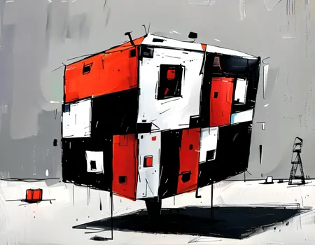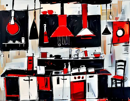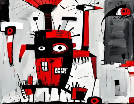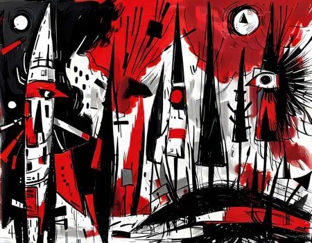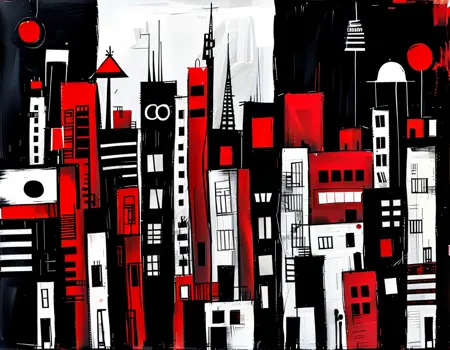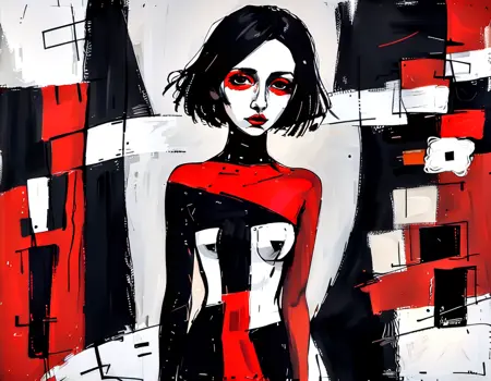 推奨されるサポートワード:モダン、抽象的、赤、黒、白。