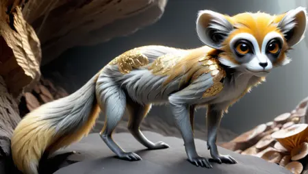 Mineral-backed Monkeyfox: This hybrid of a fox and monkey dwells in cavernous homes where it consumes minerals. These minerals filter into its fur, creating intricate and beautiful designs that are highly appealing, especially to potential mates.