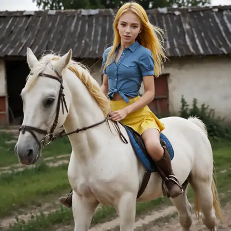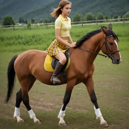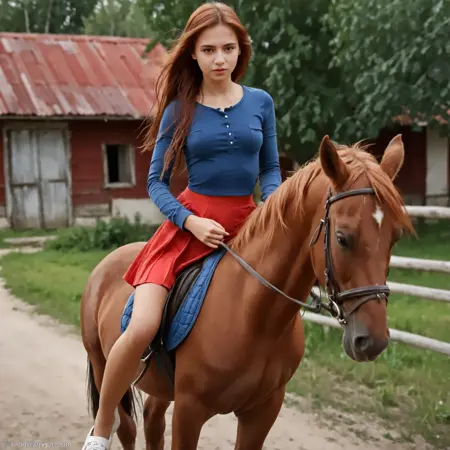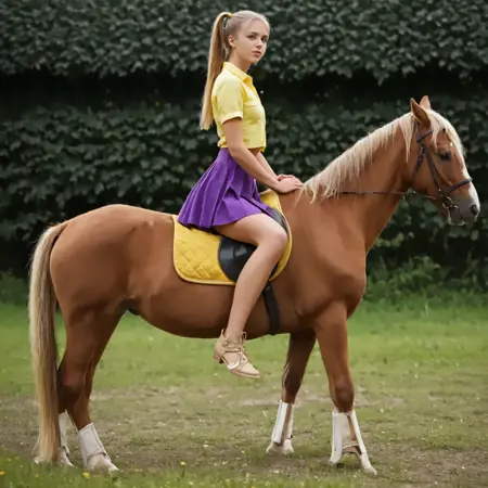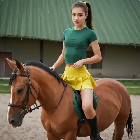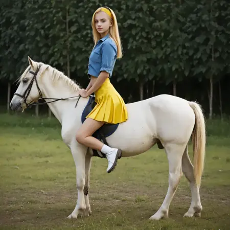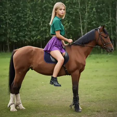RiHorse, front_view, 말을 타는 소녀.... 소녀는 ...을 입고 있습니다