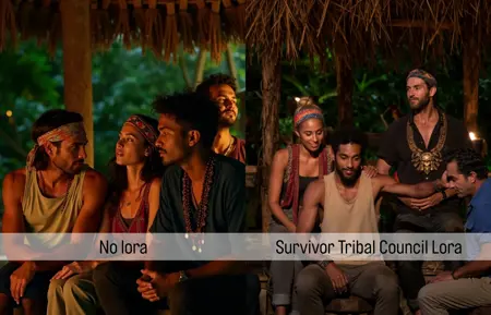 See more images from this lora: https://stablegenius.ai/models/191/survivor-tribal-council