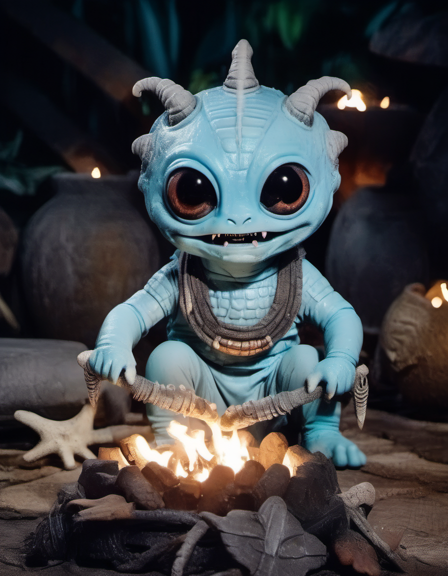 • a night photo of 'your prompt' in the style of survivor-tribal-council