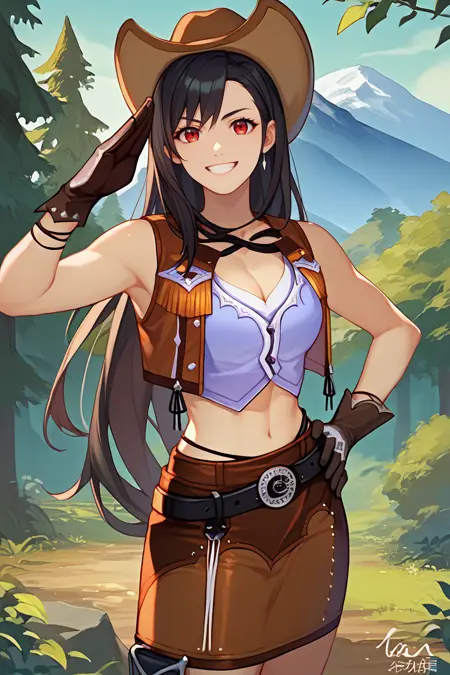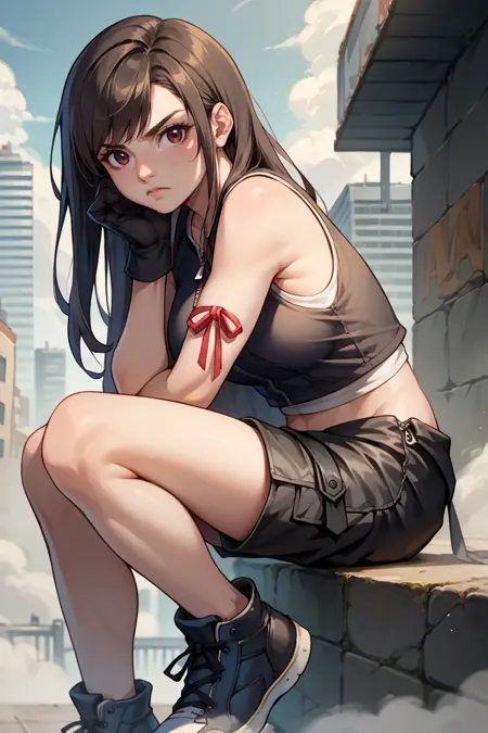 Final Fantasy VII (Remake)의 티파 로크하트. Pony Diffusion V6 XL로 학습됨. 0.8-1.0 강도에서 테스트됨.