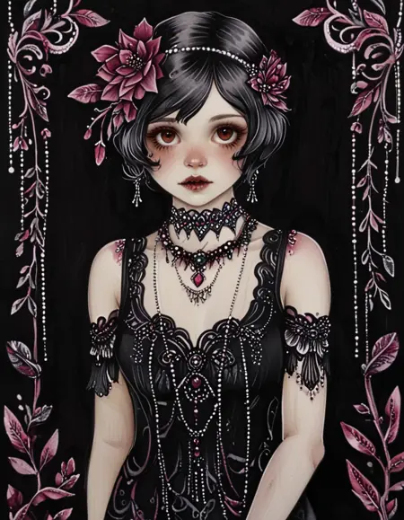 这种风格主要采用粉红、桑葚色和黑色的配色方案,精致的装饰元素令人联想到维多利亚哥特美学,图像常带有水彩画的质感。