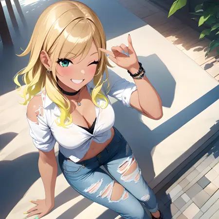활성화 태그는 "mei_izumi"입니다. 외모는 "금발 머리, 그라데이션 머리, 검은 눈, 다색 머리,ギャル"입니다.