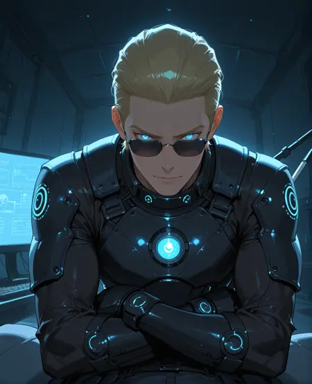 BREAK ((({black gloves, watch, belt, black coat, black pants, black turtleneck, zipper, black boots|__AWclothes__}))), ((sunglasses:1.3)),
